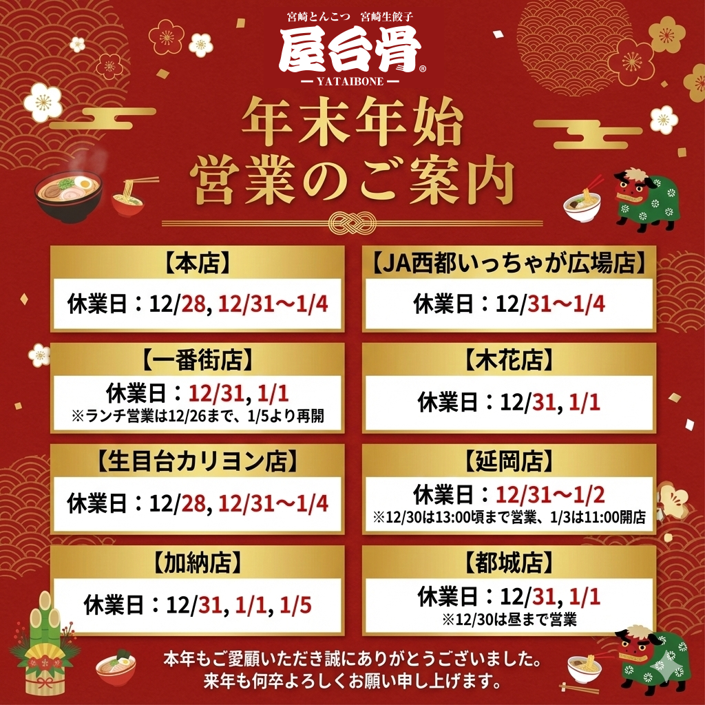 全国の皆様にも屋台骨の味を体験して頂きたい思いでオンラインショップを運営中。宮崎県外のお客様もお店と同じ味をご家庭で再現できます。