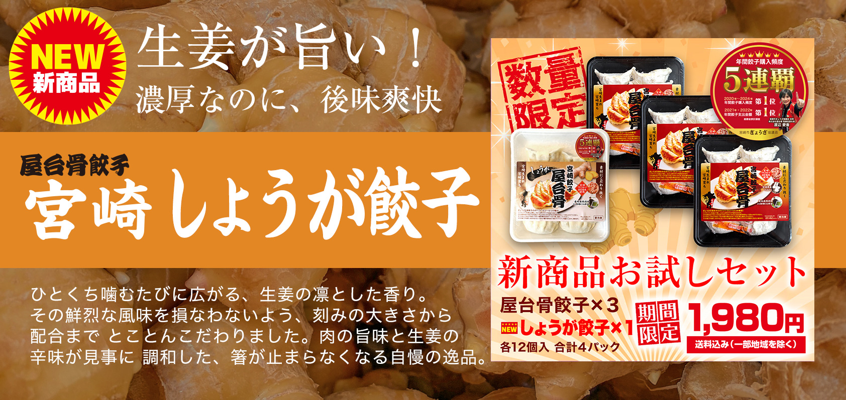 お客様の為に厳選した食材を、情熱と熟練の技で美味しく仕上げたラーメンと餃子を宮崎から。